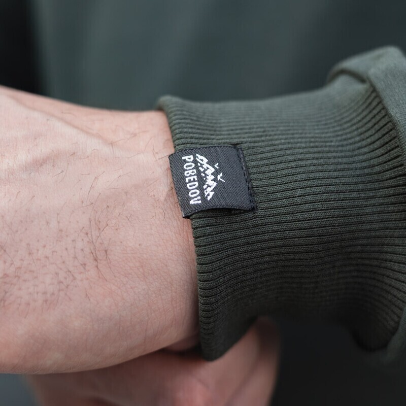 Материал: качественный европейский хлопок без начеса (европейский трикотаж двунитка пенье без утеплителя). Круглый вырез горловины. Высококачественная резинка по нижнему краю и низу рукавов. Фирменная жаккардовая бирка Pobedov