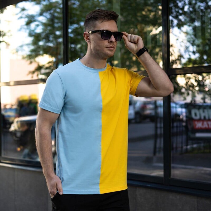 • Желто-голубая футболка Pobedov хлопковая Segmentation В2