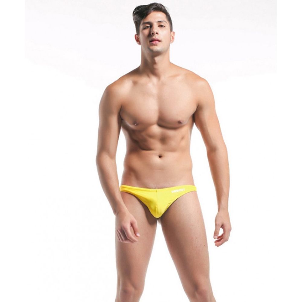 • Мужские плавательные стринги бренда Desmit желтого цвета