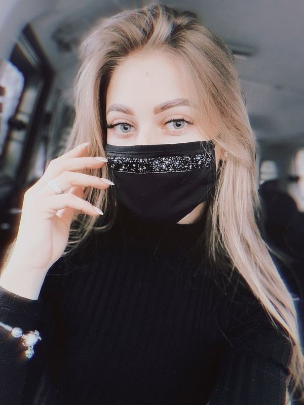 Фото - Хлопковая маска женская черного цвета с белыми стразами - Men box