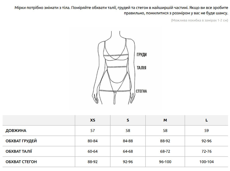 Согласно Постановления Кабинета Министров Украины от 19 марта 1994 г. №172 "Перечень товаров, не подлежащих обмену (возврату)" нательное белье и чулочно-носочные изделия возврату и обмену не подлежит. Просим это учитывать при покупке.