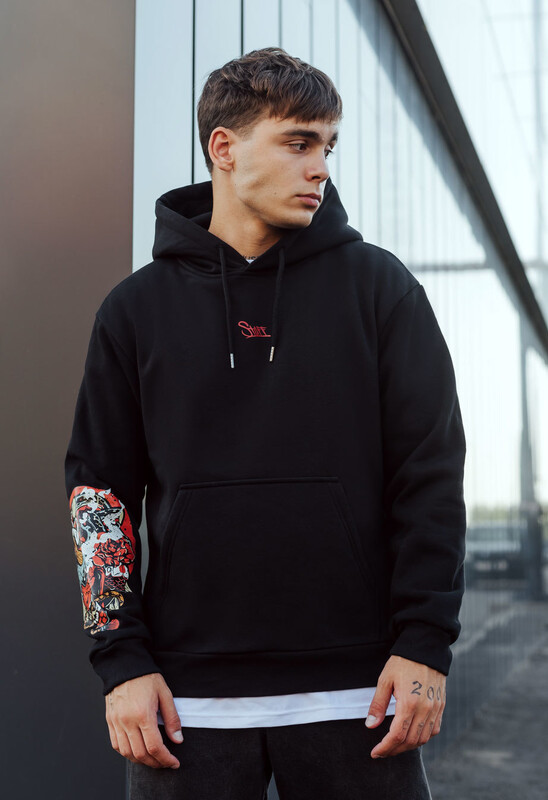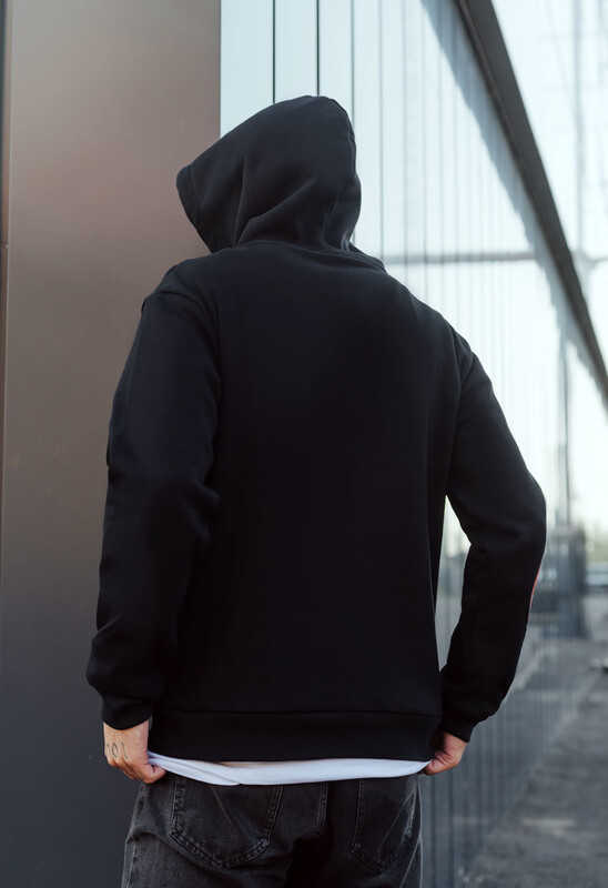 Утеплённое худи с заниженной линией плеча прекрасно подойдёт для создания повседневного образа.