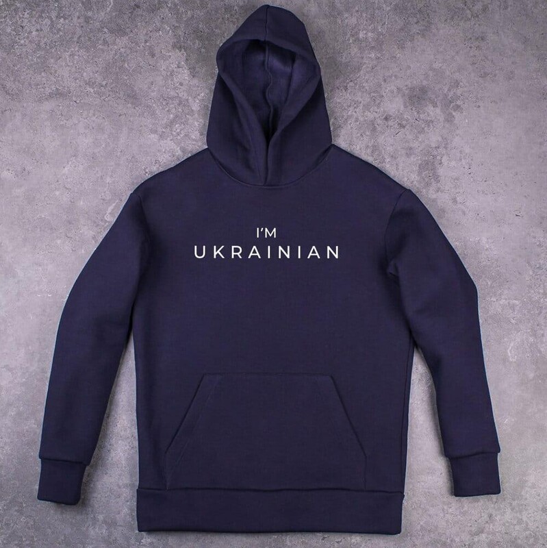 • Зимнее темно-синее худи Pobedov с лого I'M UKRAINIAN
