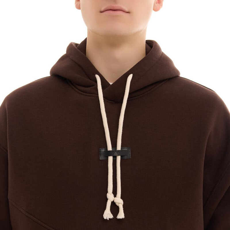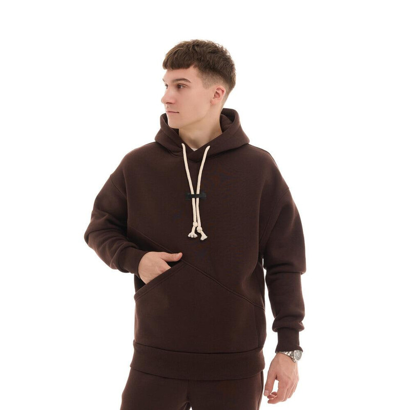 Тепло и индивидуальность в глубоком коричневом: Костюм Pobedov Space – это воплощение стиля, бескомпромиссного комфорта и функциональности, идеально подходящее для прохладных осенне-зимних дней. Изготовленный из высококачественной трёхнитки начёс (80% хлопок, 15% полиэстер, 5% эластан), он обеспечивает приятное тепло, непревзойдённую мягкость и устойчивость к потере формы при ежедневной носке. Худи имеет свободный, расслабленный крой для максимальной свободы, дополненный функциональным капюшоном. Шнурки худи проходят через брендированную кожаную бирку, добавляя изысканности. Оригинальный скошенный карман выступает ярким акцентом дизайна.