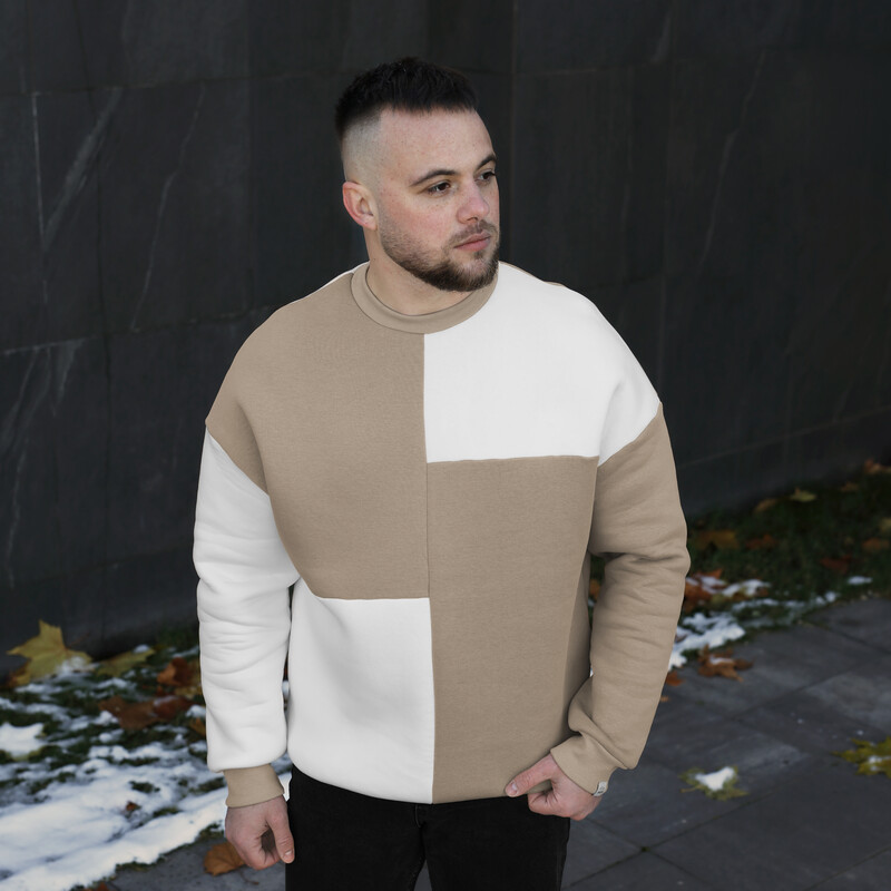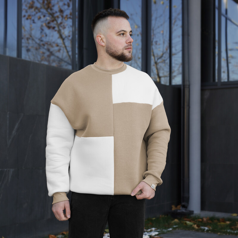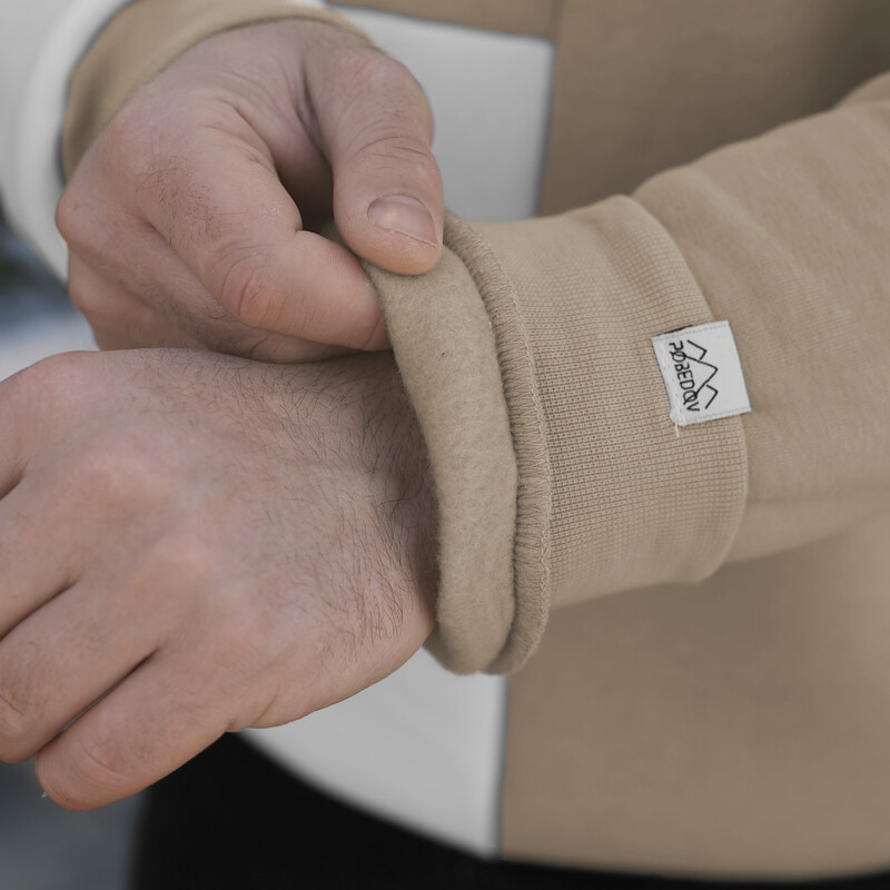 • Зимний оверсайз свитшот Pobedov The One песочного цвета