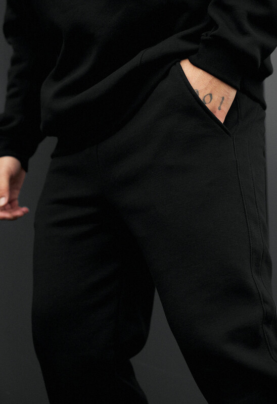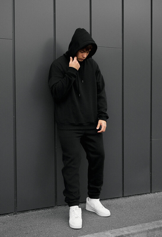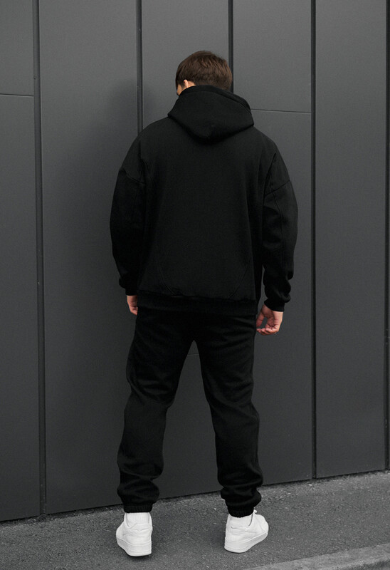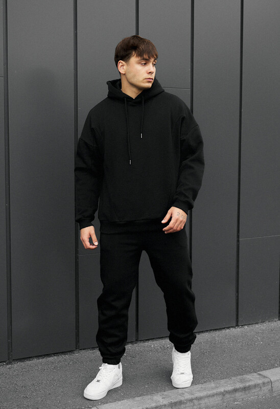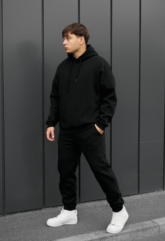 Окутайте себя роскошью и теплом с этим спортивным костюмом в насыщенном чёрном цвете, который дарит ощущение уюта и не сковывает движений. Это не просто одежда, а ваш идеальный спутник для осенне-зимних дней, воплощение комфорта для дома и сдержанной элегантности для города. Изготовленный из 100% европейского хлопка и утеплённый микрофлисом премиум-класса, он создаёт непревзойдённый микроклимат, сохраняя тепло. Худи свободного кроя oversize, лишённое кармана-кенгуру, приобретает более классический вид. Ширина капюшона регулируется шнуром, а на боковом шве припрятана фирменная бирка. Брюки, с их эластичным поясом в рубчик и регулирующим шнурком, обеспечивают идеальную посадку. Два открытых прорезных кармана гармонично дополняют лаконичный образ.